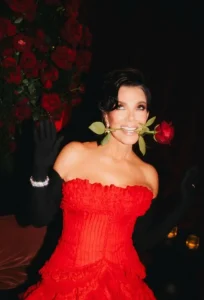 في ليلة مليئة بالأناقة والإثارة، احتفلت كريس جينر بيوم ميلادها السبعين في منزل جيف بيزوس ببيفرلي هيلز، تحت ثيم (جيمس بوند)، محاطة بألمع النجوم ولمسات من الفخامة التي لا تُنسى.ظهرت جينر بفستان أحمر كرِيمزون ذو قصة بدون أكتاف، بتفاصيل كشكش (ruffles) وذيل خفيف، نسّقته مع قفّازات سوداء شيفون طويلة وأقراط…