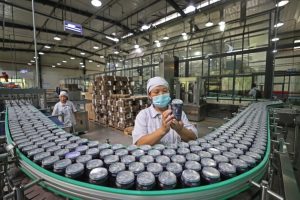 تواصل العديد من الشركات المتخصصة في الأغذية تكثيف صناعاتها خلال الفترة الحالية، تزامناً مع ارتفاع الطلب على المنتجات المعلبة من المستهلكين. وتظهر الصورة عاملة في أحد المصانع، خلال مراقبتها جودة المنتجات بعد الانتهاء من تصنيعها. (إيكونومي دايلي الصينية)أخبار ذات صلة
