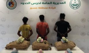 القبض على ثلاثة مخالفين لنظام أمن الحدود في عسير تمكنت الدوريات البرية لحرس الحدود في قطاع الربوعة بمنطقة عسير من القبض على ثلاثة مخالفين لنظام أمن الحدود يحملون الجنسية الإثيوبية. وقد ضبطت بحوزتهم كمية تقدر بـ60 كيلوغراماً من نبات القات المخدر. وقد تم استكمال الإجراءات النظامية الأولية بحقهم، وتسليمهم مع…
