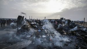 قُتل ما لا يقل عن 35 شخصاً وأصيب عشرات آخرون في قصف إسرائيلي ليلي مساء الأحد استهدف خيام النازحين الفلسطينيين في شمال غرب مدينة رفح في جنوب قطاع غزة. اعلانووصفت وزارة الصحة الفلسطينية في القطاع القصف الإسرائيل بالمجزرة، مضيفة بأن معظم المصابين من النساء والأطفال.وزعم الجيش الإسرائيلي إن القصف أدى…