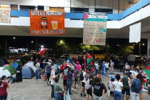 ساوباولو- نظم، مساء الثلاثاء الماضي، طلاب جامعة ساوباولو الفدرالية اعتصاما أمام كلّيتي الجغرافيا والتاريخ، ونصبوا في ساحاتهما خيامهم ونشروا أعلام فلسطين على جدران الجامعة بعد حفل خطابي استمر عدّة ساعات شارك فيه الطلاب وأحزاب وقوى واتحادات عمالية يسارية. ويأتي هذا التحرك تضامنا مع الشعب الفلسطيني ضد الإبادة الجماعية التي يتعرّض…