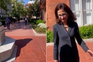 وثق مقطع فيديو لحظة توبيخ إحدى الطالبات رئيسة جامعة كولومبيا الأميركية نعمت شفيق، ومطالبتها بالاستقالة من منصبها بسبب موقفها من احتجاجات الطلاب الداعمين لفلسطين واستدعائها الشرطة للتعامل معهم. ووفق مقطع الفيديو الذي نشرته صفحة منظمة “طلاب كولومبيا من أجل العدالة في فلسطين” على إنستغرام الثلاثاء، قالت الطالبة لرئيسة الجامعة، “استقيلي…