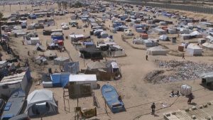 تقول الأمم المتحدة ومنظمات الإغاثة إن منطقة المواصي، التي صنفتها إسرائيل منطقة آمنة، هي محاولة سيئة التخطيط لفرض حل للأشخاص النازحين، وهم يشككون في ضمان السلامة بسبب الغارات الجوية الإسرائيلية. اعلانتجمع عشرات الأطفال لتلقي الطعام الذي أعده متطوعون في مخيم المواصي المؤقت في غزة، والذي أصبح موطنًا لمئات آلاف العائلات…
