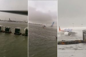 أظهرت مقاطع فيديو -متداولة على منصات التواصل الاجتماعي- طائرة ركاب تهبط في مطار دبي وسط سيول تغمر المدرج جراء المنخفض الجوي الذي تشهده المنطقة. وأعلن مطار دبي الدولي في بيان، اليوم الثلاثاء، تعليق عملياته لمدة 25 دقيقة بسبب “عاصفة قوية”. وقال البيان إن هناك سيولا تغمر الطرق المؤدية إلى المطار…