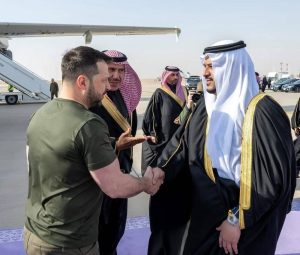 وصل الرئيس فلاديمير زيلينسكي رئيس جمهورية أوكرانيا والوفد المرافق له، إلى الرياض، في زيارة للمملكة.وكان في استقبال الرئيس الأوكراني، بالصالة الملكية بمطار الملك خالد الدولي، الأمير محمد بن عبدالرحمن بن عبدالعزيز نائب أمير منطقة الرياض، ووزير الدولة عضو مجلس الوزراء الدكتور مساعد بن محمد العيبان (الوزير المرافق). كما كان في…