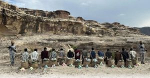 قبضت الدوريات البرية لحرس الحدود في قطاع الربوعة بمنطقة عسير على (14) مخالفًا لنظام أمن الحدود من الجنسية الإثيوبية، لتهريبهم (315) كيلوجرامًا من نبات القات المخدر، وجرى استكمال الإجراءات النظامية الأولية بحقهم، وتسليمهم والمضبوطات لجهة الاختصاص. وتهيب الجهات الأمنية بالإبلاغ عن كل ما يتوافر من معلومات لدى المواطنين والمقيمين عن…