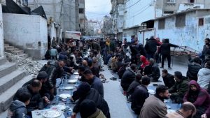 غزة- في مشهد مهيب، احتشد مئات الفلسطينيين شيبا وشبانا وأطفالا من سكان “حارة بربرة” والنازحين إليها في “مخيم الشابورة” للاجئين بمدينة رفح جنوب قطاع غزة، على مائدة إفطار رمضانية، وسط أجواء سادتها المحبة والتكافل. وبدا هذا المشهد غير مألوف في ظل تحليق مكثف لمقاتلات حربية إسرائيلية وطائرات مسيّرة دون طيار…