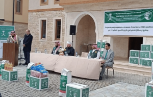دشن مركز الملك سلمان للإغاثة والأعمال الإنسانية في مدينة بودغوريتسا أمس الأول، مشروع توزيع سلة “إطعام” الرمضاني بجمهورية الجبل الأسود للعام 1445هـ. حضر التدشين سفير خادم الحرمين الشريفين لدى جمهورية ألبانيا غير المقيم بالجبل الأسود فيصل بن غازي حفظي، ورئيس المشيخة الإسلامية المفتي العام للجبل الأسود رفعت فيزيتش، ورئيس البرلمان…