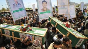 فيما تعرضت مواقع حوثية في محافظة الحديدة لقصف من القوات الأمريكية والبريطانية المشتركة، شيعت جماعة الحوثي اليوم (السبت) 17 جنازة قالت إنها لعناصرها الذين قتلوا في ضربات جوية أمريكية بريطانية مشتركة. وذكرت وسائل إعلام حوثية أن 8 من القتلى ينتحلون رتبة عقيد، فيما 4 يحملون رتبة رائد، و5 برتبة نقيب.…