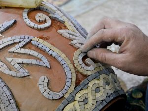 يفرش غسان سعيد الحمود أدواته، المكونة من أحجار وألوان تشكيلية وعدة لوحات، أمامه في مشغل للفسيفساء يقع بالقرب من مدينة سرمدا شمال غرب سوريا. يعمل الحمود بمهنة الفسيفساء منذ 22 عاماً، ويختص في اللوحات الصعبة والدقيقة التي تتميز بتحليل الألوان المائية والزيتية، ويعد أحد أكثر الحرفيين شهرة وأهمية في المنطقة.…