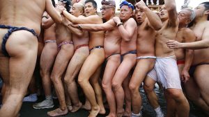 آخر تحديث: 18/02/2024 – 17:54 أقيم مهرجان إيو، المعروف أيضاً باسم “مهرجان العراة”، في معبد سايدايجي بمحافظة أوكاياما مساء السبت، وهو تقليد يرتدي فيه رجال الحد الأدنى من الملابس، التي عادة ما يكون مئزر ياباني يُعرف باسم “فوندوشي” بالإضافة إلى زوج من الجوارب البيضاء يعرف بـ”التابي”، ويحتفي ” ببركات الحصاد، والرخاء، والخصوبة.…