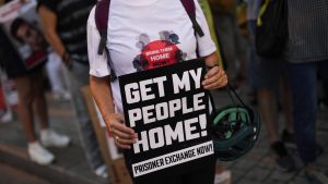 آخر تحديث: 09/01/2024 – 13:30 احتشد عشرات المتظاهرين الثلاثاء، خارج أحد الفنادق في تل أبيب، حيث كان يجتمع وزير الخارجية الأمريكي أنتوني بلينكن مع الرئيس الإسرائيلي إسحق هرتسوغ، للمطالبة بتحقيق وقف لإطلاق النار في قطاع غزة، بهدف تسهيل عملية إطلاق الأسرى. احتشد عشرات المتظاهرين الثلاثاء، خارج أحد الفنادق في تل…