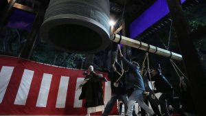 آخر تحديث: 01/01/2024 – 23:09 تجمعت حشود من المواطنين بمحاذاة معبد زوجوجي في العاصمة اليابانية طوكيو عند منتصف الليل تزامنا مع احتفالات اليابان بقدوم العام الجديد. ومع حلول منتصف الليل، تناوب الكهنة وأفراد من الجمهور على ضرب عمود خشبي بالجرس الضخم في المعبد إيذانا ببدء العام الجديد. وقرع الأجراس في منتصف…