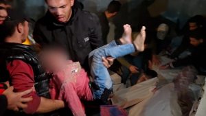 هرعت فرق الدفاع المدني ومواطنون إلى مكان انتشال الجرحى وجثامين الشهداء الذي سقطوا في قصف إسرائيلي استهدف منزلا في رفح جنوبي قطاع غزة، وأظهرت المشاهد التي رصدها الصحفي هاني الشاعر ضحايا وبينهم أطفال.و يتم انتشال هؤلاء بصعوبة من تحت ركام المنزل، فيما يستمر البحث عن آخرين.وبحسب مراسل الجزيرة، فقد استشهد…