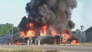 لقي ما لا يقل عن 40 شخصاً حتفهم في انفجار شاحنة صهريج عقب تعرضها لحادث في وسط ليبيريا، حسبما أعلنت الشرطة الثلاثاء. اعلانواندلعت النيران في الصهريج المحمّل بالبنزين بعد سقوطه في حفرة على أحد الطرق في توتوتا، على بعد 130 كيلومتراً من العاصمة منروفيا.وقال الدكتور فرنسيس كاتي لقناة “سوبر بونغيز…