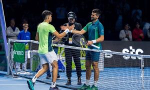 سلّم وزير الرياضة رئيس اللجنة الأولمبية والبارالمبية السعودية الأمير عبدالعزيز بن تركي بن فيصل بن عبدالعزيز، ورئيس مجلس إدارة الهيئة العامة للترفيه (GeA) المستشار تركي بن عبدالمحسن آل الشيخ، لاعب التنس الإسباني كارلوس ألكاراز كأس «موسم الرياض» للتنس بعد فوزه اليوم (الأربعاء) على نظيره الصربي نوفاك جوكوفيتش بنتيجة 6/ 4،…