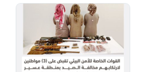ألقت القوات الخاصة للأمن البيئي، القبض على 3 مواطنين لارتكابهم مخالفة الصيد في وادي التيّه بمحافظة محايل عسير، وهم، فيحان حمود السبيعي، ومقعد عبدالله السبيعي، ورائد ماضي السبيعي.وضبطت القوات بحوزتهم 5 طيور من نوع الحجل العربي، وبندقيتين ناريتين وبندقية رش (شوزن) وبندقية غازية و(233) ذخيرة و(3) مناظير، وجرى اتخاذ الإجراءات…