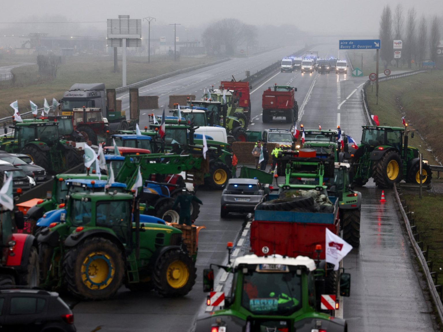 وبدأ حصار باريس، الاثنين، عندما أغلقت مئات الجرارات الزراعية الطرق الإستراتيجية الثمانية المؤدية إليها، وبعد محاولات عديدة، تمكن بعض المحتجين من اقتحام منطقة تخزين في السوق الدولي الأربعاء، مما أدى إلى اعتقال 91 منهم.