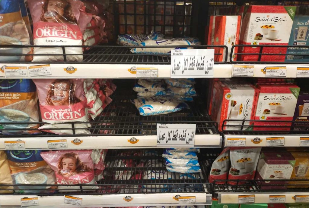 واتخذت الحكومة خطوات لحل الأزمة شملت زيادة كميات السكر المدعوم في الأسواق، وتنفيذ مبادرات لخفض أسعاره، وفرض حظر مؤقت على الصادرات، وتشديد الإجراءات الرقابية.
