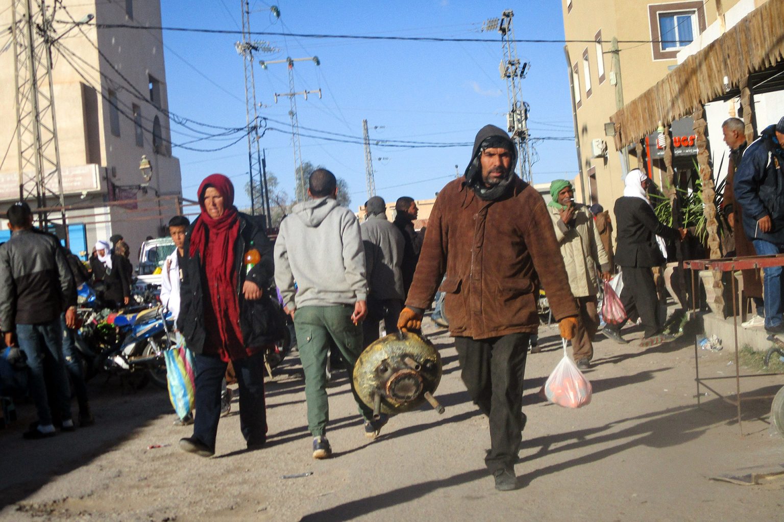 لم يمنع البرد القارس أهالي المدينة الحدودية، من الانتظار منذ الساعات الأولى للصباح، أمام أحد المحلات حيث نشبت العديد من المشاجرات بين الطوابير الطويلة، أدت إلى إصابة عدد منهم بسبب الصراع على أولوية الحصول على كيس من السميد، وسط ردود فعل غاضبة حول قلة الكميات وندرتها.