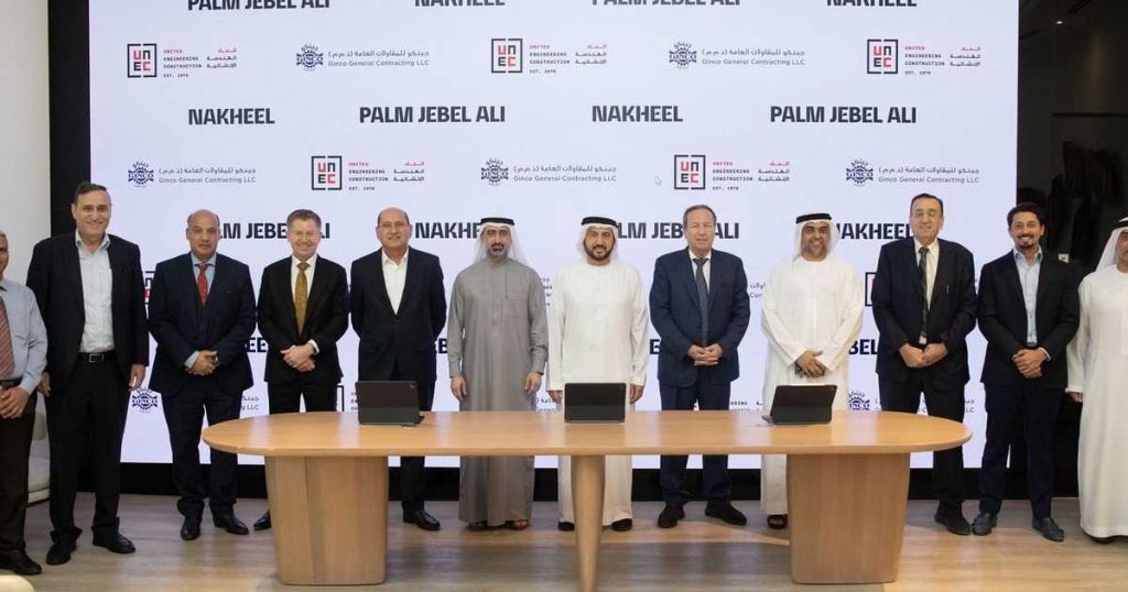 أعلنت “نخيل”، التابعة لـ”دبي القابضة للعقارات”، عن ترسية عقدين بقيمة تتجاوز 3.5 مليار درهم على شركتي “جينكو للمقاولات العامة” واتحاد الهندسة الإنشائية “يونك” لبناء 544 فيلا في مشروع “نخلة جبل علي”، ما يمثل مرحلة مهمة في تنفيذ أحد أهم المشاريع التطويرية على الواجهة البحرية في دبي.