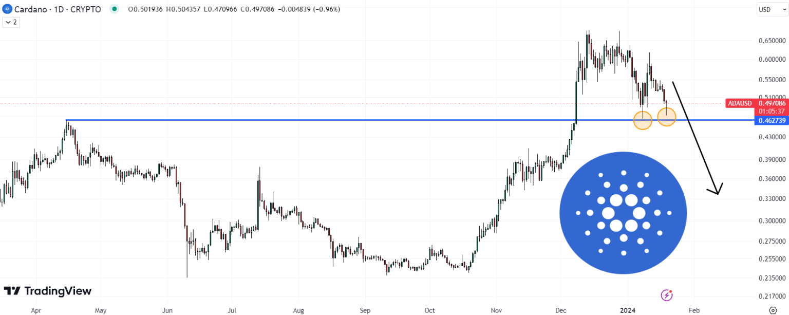 في الواقع، عند المستويات الحالية، يظل ADA منخفضًا بنحو 27٪ منذ أن سجل أعلى مستوياته في عدة سنوات عند أعلى مستوى 0.60 دولار في ديسمبر.