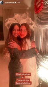 احتفلت الفنانة المصرية أمينة خليل، خلال الأيام الماضية بـ «ليلة الحناء»، في سرية تامة وسط حضور عائلي ومجموعة من الأصدقاء المقربين من داخل الوسط الفني. ونشرت الفنانة المصرية جميلة عوض، صورة لها برفقة أمينة خليل من احتفال ليلة الحناء، وأرفقت المنشور بتهنئة خاصة منها لأمينة خليل قائلة:«أمينة هي العروس ليلة…