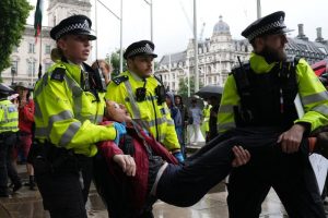 أعلنت شرطة العاصمة البريطانية لندن اليوم (السبت) اعتقال 55 شخصاً خلال مسيرة نظمتها حركة «فلسطين أكشن» المحظورة أمام مبنى البرلمان، وأوضحت الشرطة في منشور على حسابها في «إكس» أن الحشد تجمع في ساحة البرلمان وأخذ يلوّح بلافتات تدعم الحركة التي حُظرت هذا الشهر بموجب قانون مكافحة الإرهاب. ونظم محتجون تجمعاً…