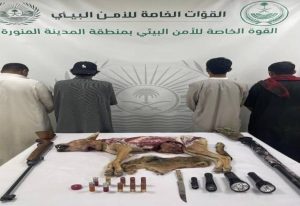 تمكنت الدوريات الميدانية للقوات الخاصة للأمن البيئي وهي تؤدي مهماتها في تنفيذ نظام البيئة في منطقة المدينة المنورة، من القبض على (3) مواطنين ومقيم من الجنسية الباكستانية، وهم طلال صنت السهلي, وحامد صنت السهلي, وخليل مهدي السهلي، وفيصل الرهار بخش، لارتكابهم مخالفة صيد كائن فطري مهدد بالانقراض «الذئب العربي»، وضبط…