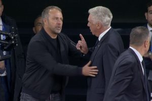 شوهد مدرب ريال مدريد كارلو أنشيلوتي في حالة غضب شديد تجاه دكة بدلاء نادي برشلونة، بعد هدف رافيينا الرابع بمرمى النادي الملكي خلال مباراة كلاسيكو الدوري الإسباني لكرة القدم، السبت. وتعرض الريال لهزيمة نكراء في عقر داره أمام برشلونة (0-4)، في المباراة التي جمعتهما مساء أمس السبت، على ملعب “سانتياغو…