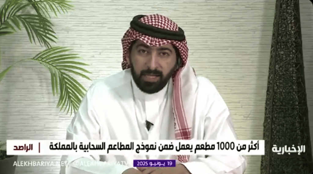 عضو جمعية ملاك المطاعم والمقاهي فهد السعدون: نسعى حاليا لأن يكون لكل مليون شخص في المملكة 3000 مطعم و1000 مقهى، ونعمل على التوسع في المطاعم السحابية#الراصد pic.twitter.com/4uAOEoyXhL