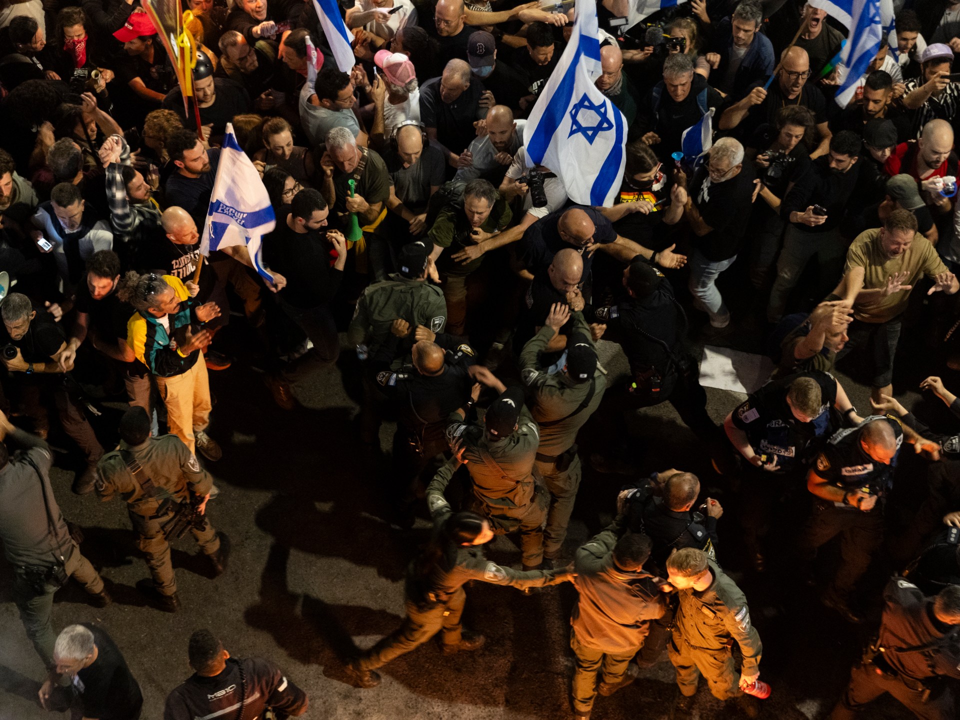 توافد آلاف الإسرائيليين -اليوم الأحد- للتظاهر في محيط المقار الحكومية وأمام مقر الكنيست في مدينة القدس المحتلة للمطالبة بإعادة الأسرى والتوصل لصفقة مع حركة المقاومة الإسلامية (حماس) وإقالة الحكومة، في حين رفعت الشرطة الإسرائيلية حالة التأهب.