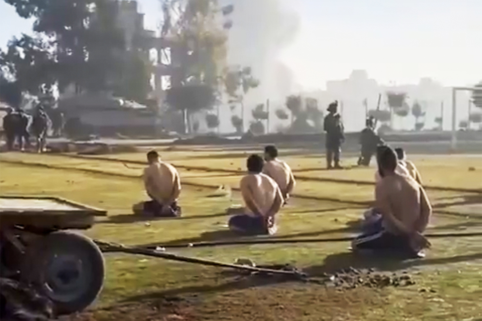 وأظهرت المقاطع جنودا من الاحتلال يقفون أمام شباب مكبلين وعراة إلا من سراويل قصيرة، بعد أن تم جمعهم في ساحة إحدى المدارس قبل اقتيادهم إلى مكان مجهول.