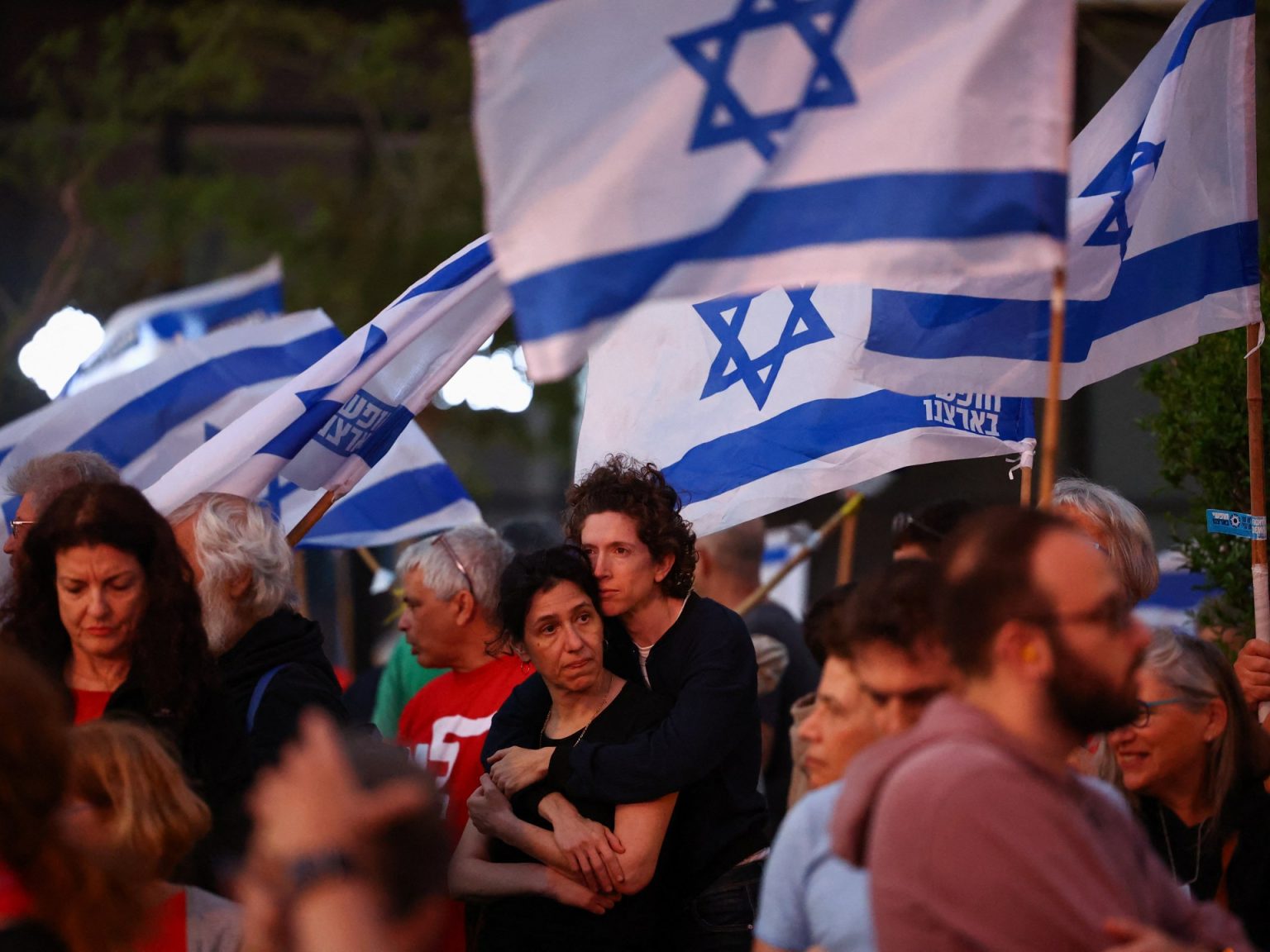 وتشهد المدن الإسرائيلية احتجاجات لأهالي الأسرى المحتجزين في غزة للمطالبة بإبرام صفقة تبادل وإجراء انتخابات مبكرة.