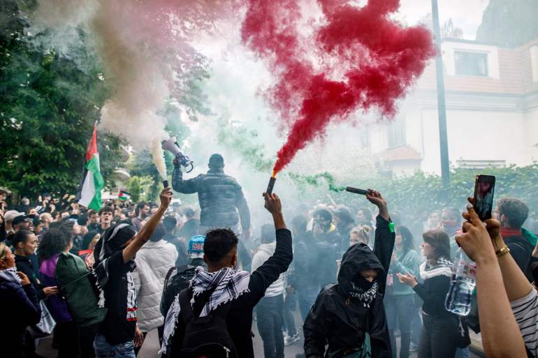وتجمع المتظاهرون الذين ارتدوا “الكوفيات” ولوحوا بالأعلام الفلسطينية أمام السفارة في أوكل، وهي بلدية واقعة في جنوب إقليم بروكسل العاصمة، وهتفوا “يجب أن يرحل الاحتلال”.