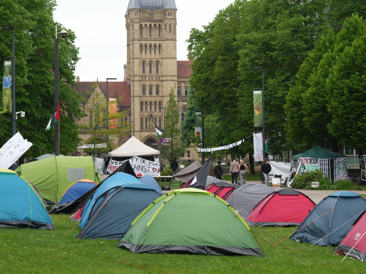 وقد انضم طلاب جامعة يورك (وسط إنجلترا) إلى الحراك الطلابي المتنامي، ونصب طلاب وموظفون بالجامعة خيامهم في حرمها، معتبرين أن إدارة الجامعة لا تزال تقدم دعما غير مباشر لإسرائيل، رغم إعلانها أنها ستسحب استثماراتها من شركات تصنع وتبيع أسلحة لها.