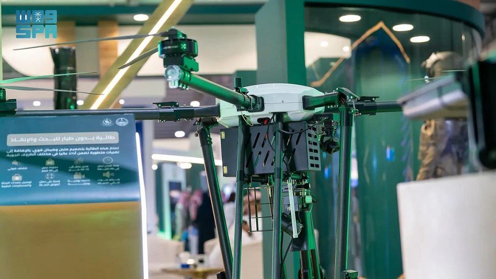تستعرض المديرية العامة للدفاع المدني ضمن جناح وزارة الداخلية في معرض الطيران العام 2025، الذي ينظمه نادي الطيران السعودي في مطار الثمامة بالرياض، طائرة دون طيار للبحث والإنقاذ، وذلك ضمن منظومة التقنيات الحديثة الداعمة لأعمال الدفاع المدني في مواجهة الحالات الطارئة.