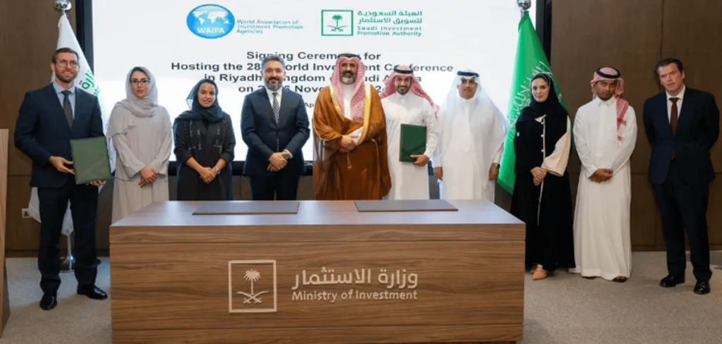 وقعت الهيئة السعودية لتسويق الاستثمار، اتفاقية مع الرابطة العالمية لوكالات ترويج الاستثمار، لاستضافة مؤتمر الاستثمار العالمي بنسخته الثامنة والعشرين خلال الفترة 25 – 27 نوفمبر 2024 في الرياض، وذلك في إطار حرص المملكة على قيادة التحول الرقمي والاستدامة والتعاون العالمي في قطاع الاستثمار، مما يؤكد موقع المملكة بصفته مركز استثمار عالمي للترويج لبيئة الأعمال الواعدة في المملكة، بالإضافة إلى مناقشة قضايا التنمية الاقتصادية وفرص الاستثمار المختلفة حول العالم.