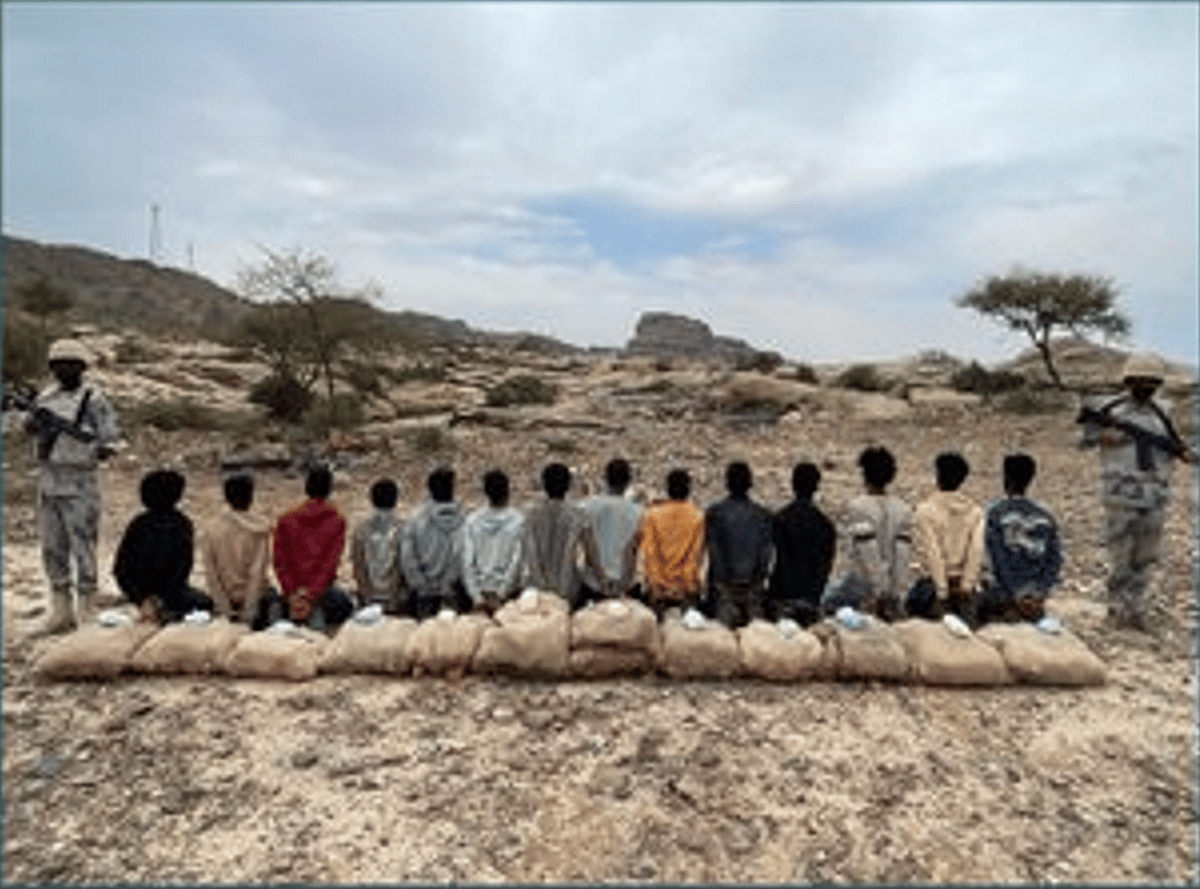 قبضت الدوريات البرية لحرس الحدود في قطاع الربوعة بمنطقة عسير على (14) مخالفًا لنظام أمن الحدود من الجنسية الإثيوبية لتهريبهم (350) كيلوجرامًا من نبات القات.