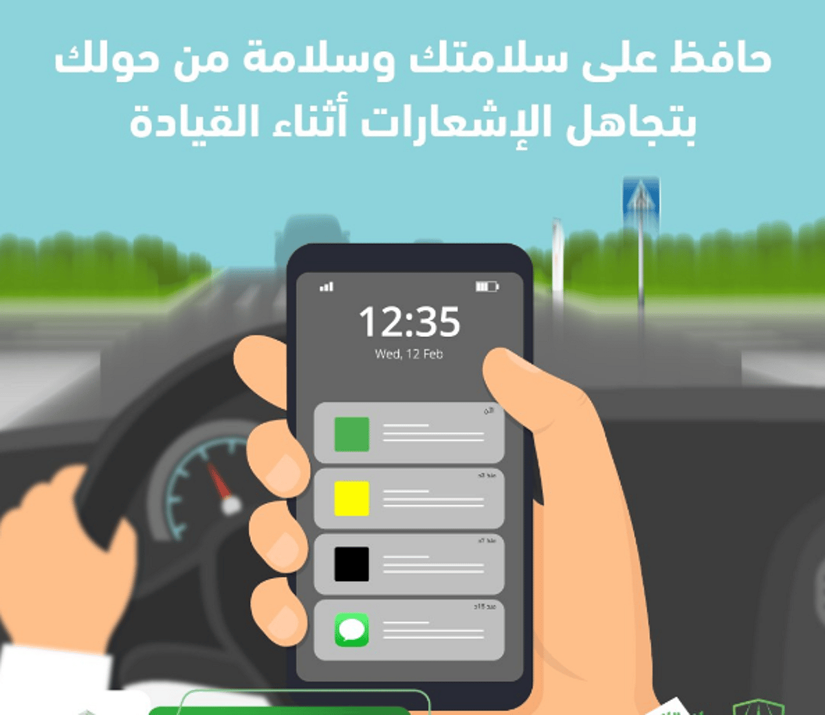 لسلامتك؛ لا تنشغل بغير الطريق أثناء قيادة المركبة.#أسبوع_المرور_الخليجي #قيادة_بدون_هاتف#سلامتك_تهمنا pic.twitter.com/o8WRFmNVGl