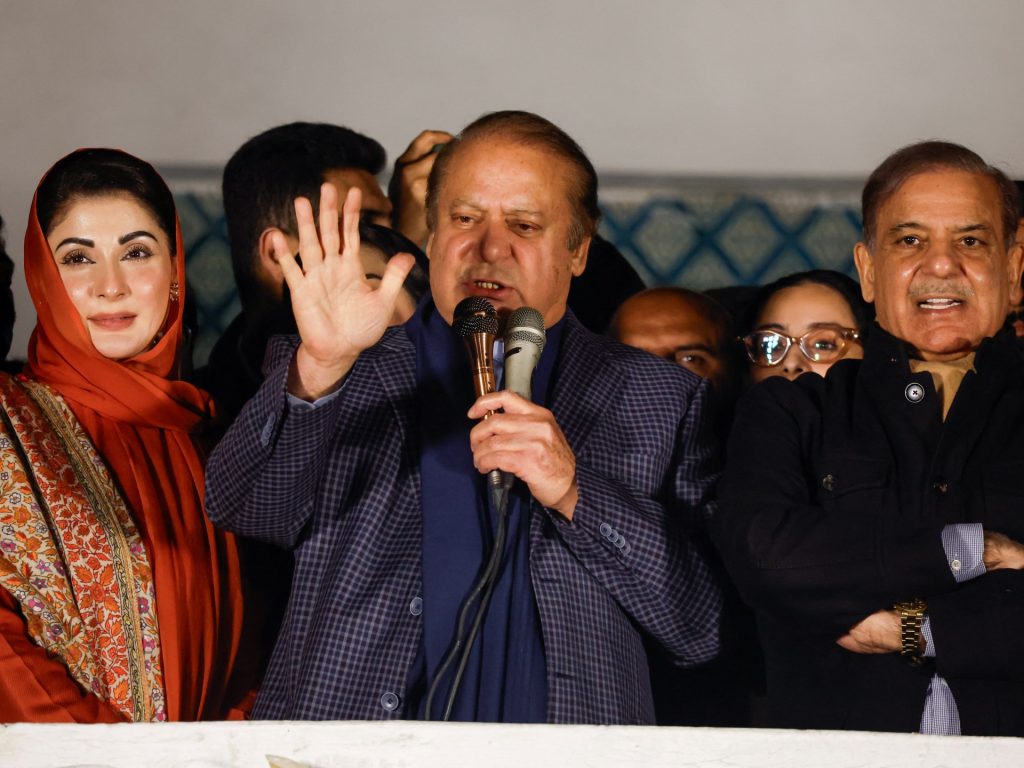 وقال شريف من مقر حزبه في لاهور “ليس لدينا الغالبية لنشكل حكومة منفردين، لذا ندعو الأحزاب الأخرى والمرشحين الفائزين إلى العمل معنا”.