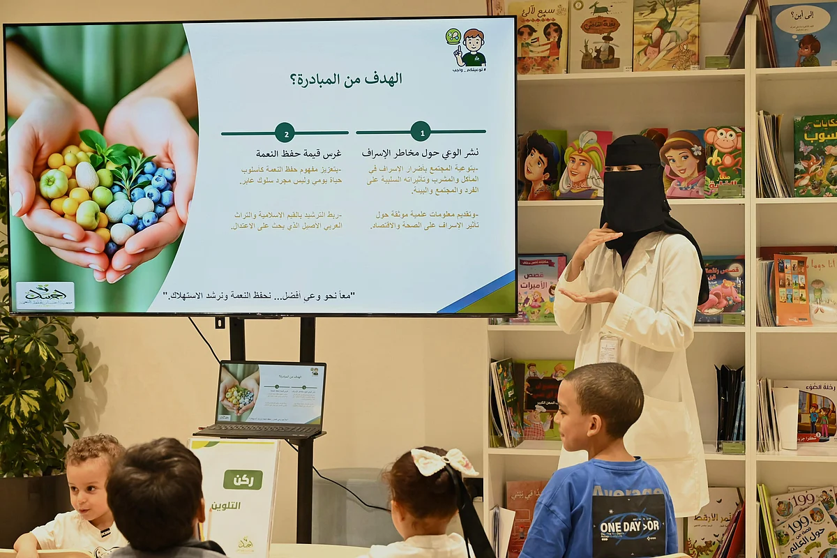 واستُهل البرنامج بتقديم أخصائية التغذية الإكلينيكية وجدان خبراني جلسة تثقيفية شيقة تفاعلت معها أنظار وأسئلة الأطفال، حيث تناولت فيها أساليب الحفاظ على النعمة وطرق الاستفادة المثلى من الطعام بأسلوب مبسط يتناسب مع أعمارهم، مما أسهم في رفع مستوى الوعي لديهم وتعزيز الرسالة المجتمعية للجمعية