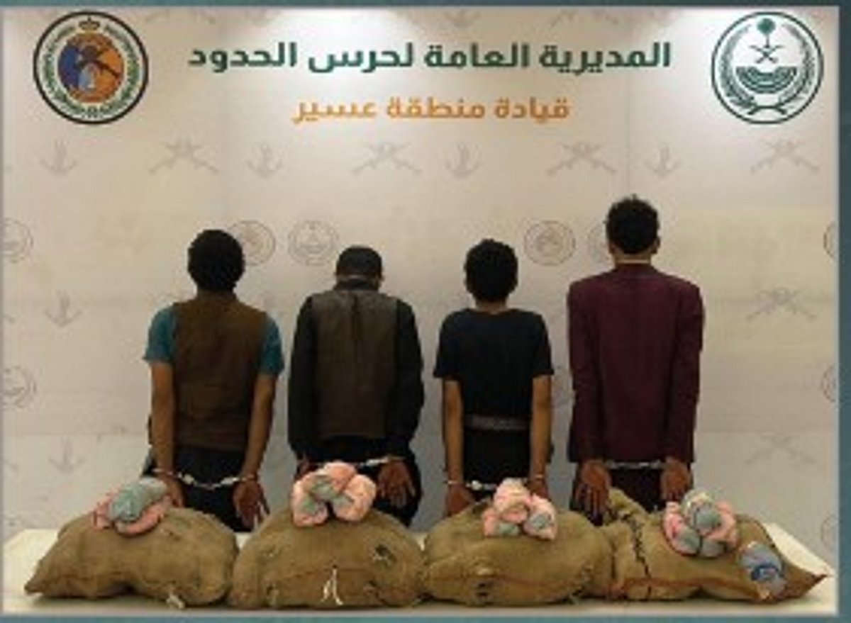 قبضت الدوريات البرية لحرس الحدود في قطاع الربوعة بمنطقة عسير على (4) مخالفين لنظام أمن الحدود من الجنسية اليمنية، لتهريبهم (60) كيلوجرامًا من نبات القات المخدر