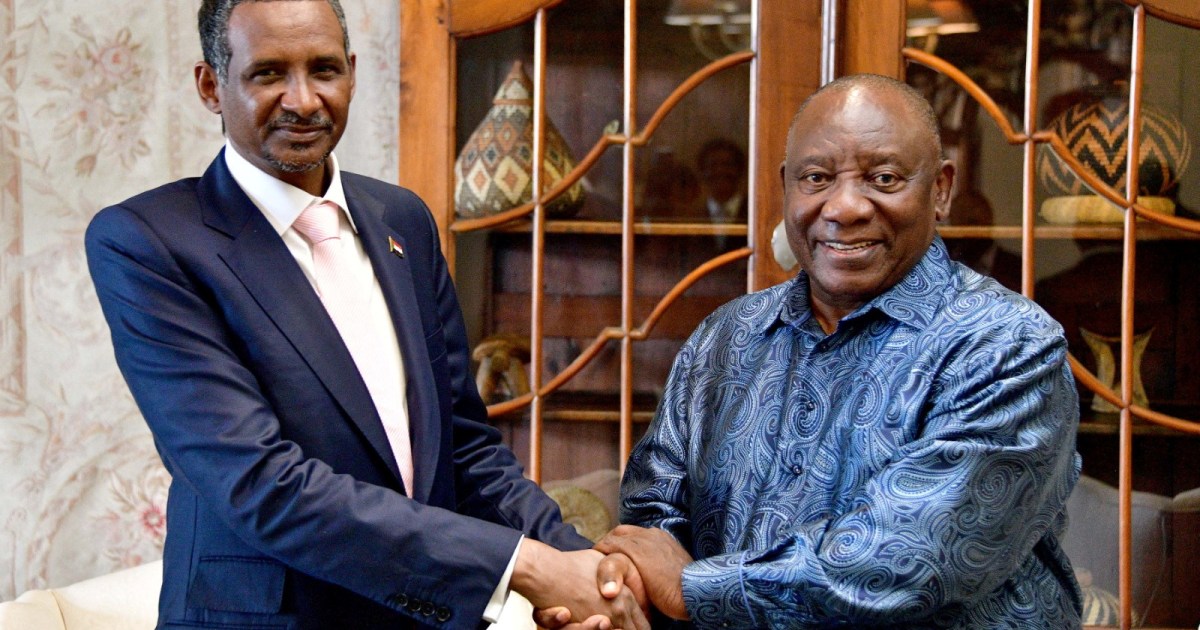 وأكدت رئاسة جنوب أفريقيا في بيان أن الرئيس رامافوزا أعرب -خلال لقائه حميدتي في بريتوريا- عن دعم جنوب أفريقيا للحوار الوشيك بين حميدتي والبرهان”، داعيا إلى وقف فوري لإطلاق النار ووقف دائم للأعمال العدائية.