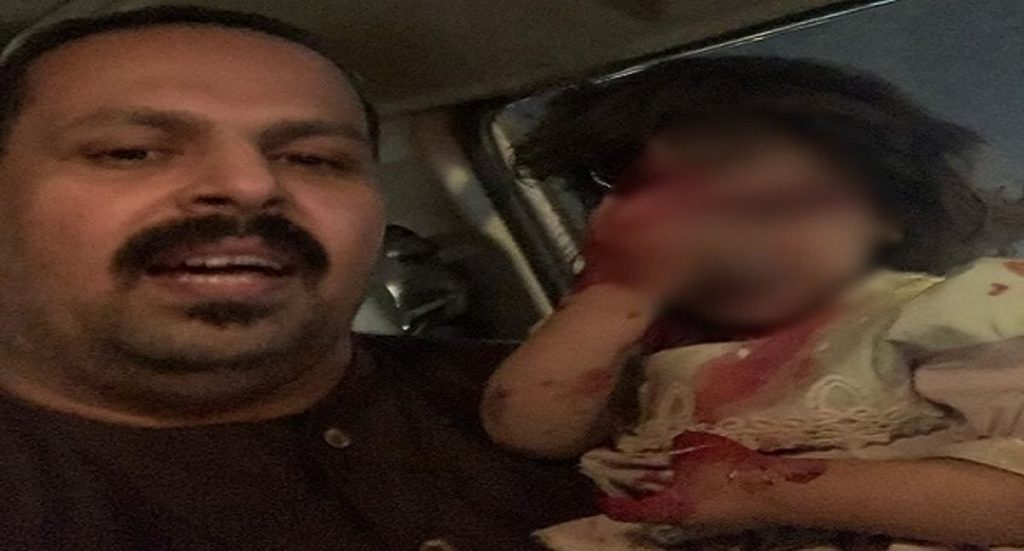 “عاجل” تواصلت مع الشاب السعودي طلال فهيد العنزي، الذي أوضح أنه كان يسير على الدائري الشمالي مع الثمامة فوق الكوبري، عند الساعة ١١ ليلًا، وكان أمامه سيارة “جيب هونداي” بها أسرة، وفجأة فُتح الباب الخلفي للسيارة وسقطت طفلة منه في منظر مروع.