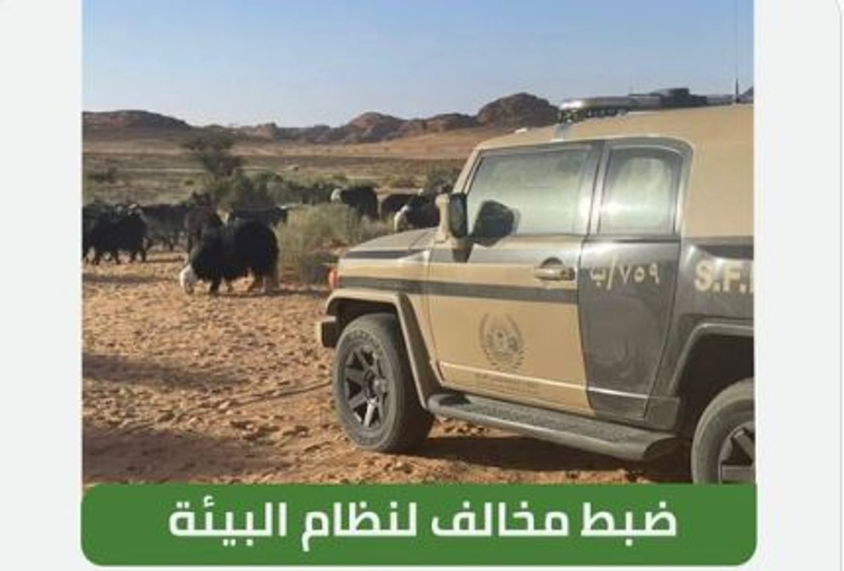 ضبطت القوات الخاصة للأمن البيئي، مواطناً مخالفًا لنظامي البيئة لارتكابه مخالفة رعي 50 رأسًا من الأغنام في مواقع محظور الرعي فيها في محمية شرعان الطبيعة بمنطقة المدينة المنورة.