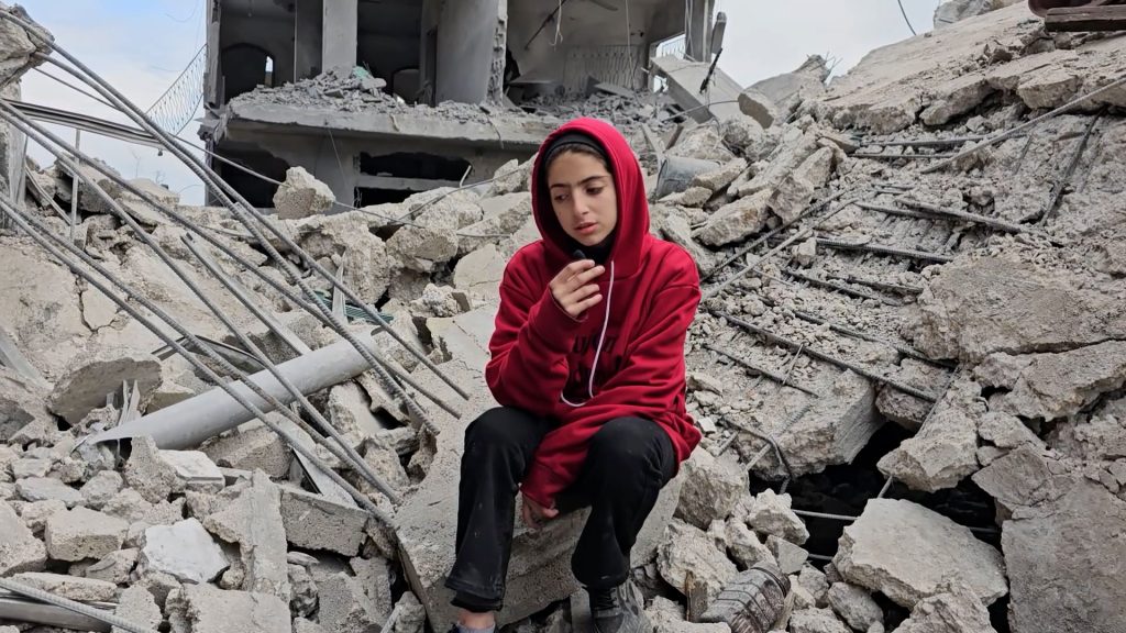 وعلى أطلال منزلها، استرجعت الطفلة ذكريات جميلة عاشتها داخل منزلها برفقة عائلتها، وتبحث عما تبقى ليكون ذكرى له بعد تدميره.