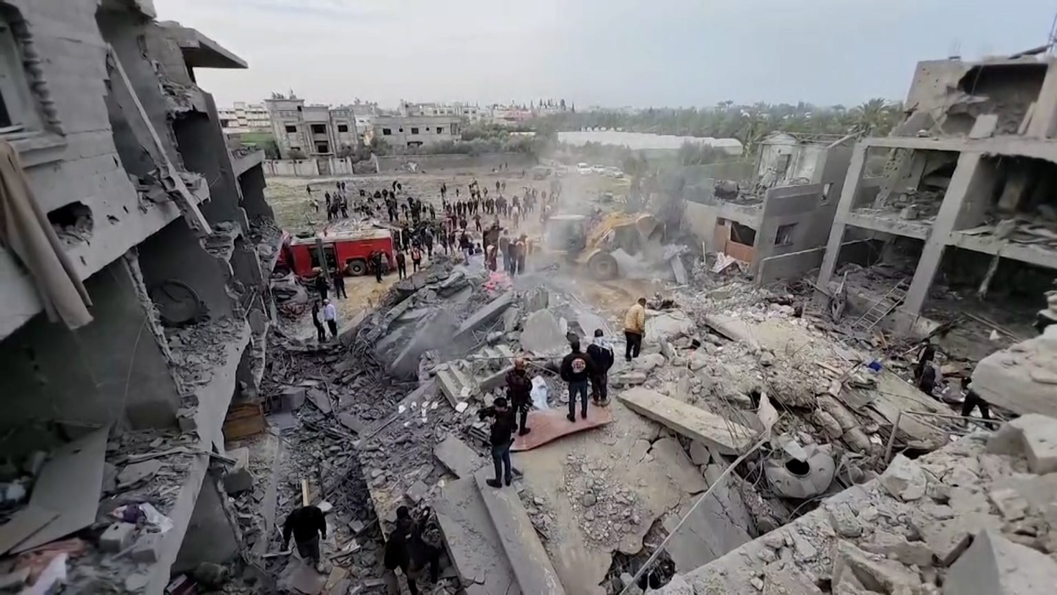 رصدت كاميرا الجزيرة آثار القصف الإسرائيلي العنيف على منازل عائلتي ياغي والعطار في مدينة دير البلح وسط قطاع غزة، مع محاولة أطقم الدفاع المدني إلى جانب الأهالي البحث عن عالقين أو مفقودين تحت الأنقاض.