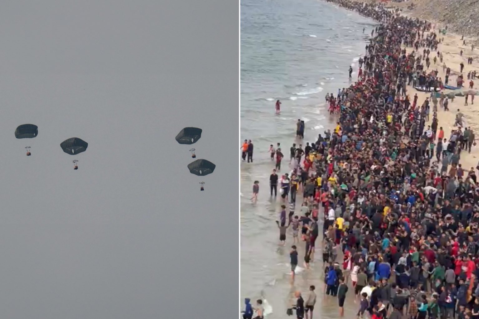 وأشاد بعض المتابعين بعملية الإنزال وإلقاء المساعدات لأهالي غزة، وتمنوا أن تكون هناك عمليات إنزال إضافية لتصل المساعدات إلى أكبر قدر ممكن من الناس، في حين تساءل آخرون عن سبب عدم إدخال المساعدات من المعابر البرية بدلا من رميها من الجو على الساحل وسقوطها في البحر.