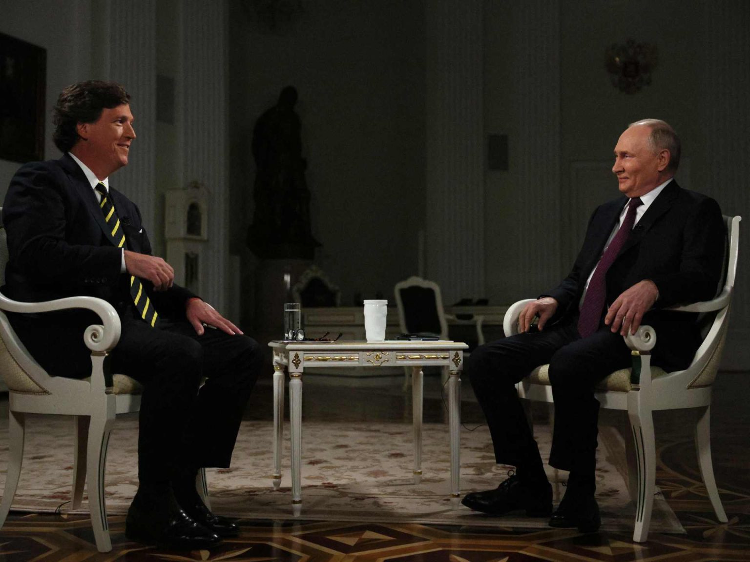 وقال الكرملين إن بوتين وافق على إجراء المقابلة مع كارلسون -في أول مقابلة له مع الإعلام الغربي منذ بدء الحرب على أوكرانيا في فبراير/شباط 2022- لأن النهج الذي يتبعه مذيع فوكس نيوز السابق يختلف عن التغطية الأحادية الجانب للصراع الروسي الأوكراني التي تتبعها كثير من وسائل الإعلام الغربية.